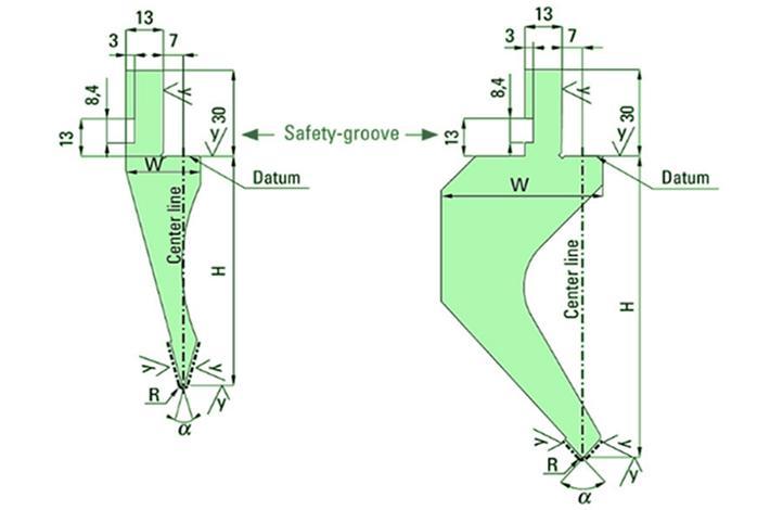 適用於Amada折彎機的彎曲模具屬於歐洲風格的模具,不管是上模還是下模都有標準的安全槽,可防止工具掉落。