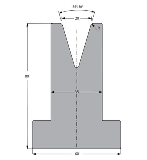 35/30度下模, 高度80mm,阿瑪達折彎機模具