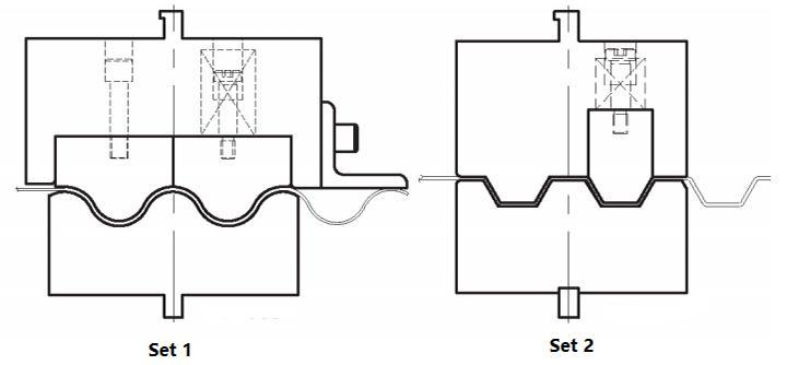使用Set1 和Set 2模具,成型的材料類似於瓦楞紙板,有連續的波紋,同時可以保證波紋形狀的一致性。